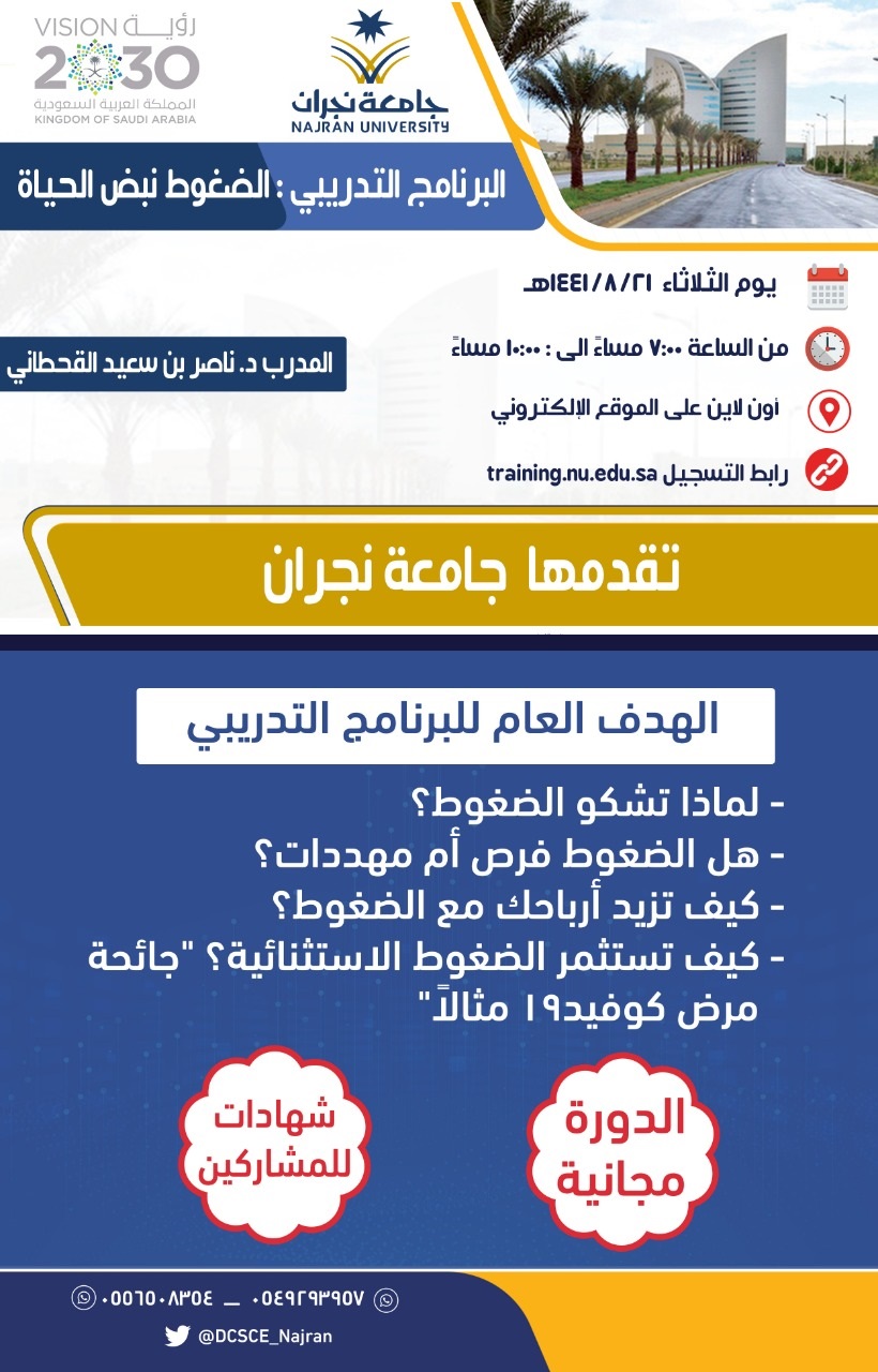 Najran University جامعة نجران تد رب المجتمع عن ب عد ببرنامج الضغوطات نبض الحياة أخبار الجامعة