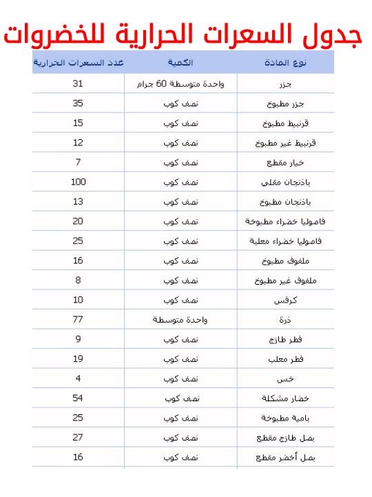 مطبخ ام احمد جدول السعرات الحرارية لمعظم الاغذية